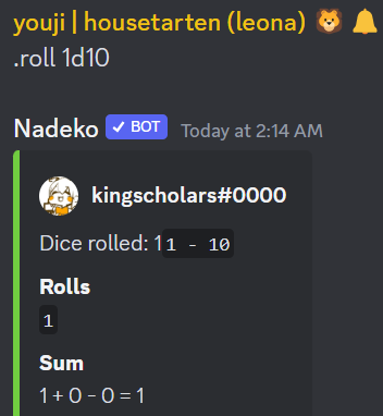 5 or higher - You're afflicted with gigglefits. You will just keep snickering or laughing the next couple of rooms til it wears off.]